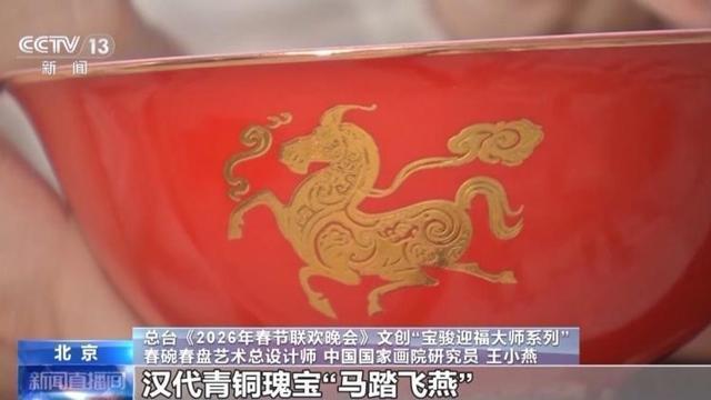 总台《2026年春节联欢晚会》文创“宝骏迎福众人系列”春碗春盘艺术总酌量师、中国国度画院筹商员 王小燕:“春碗”马的酌量灵感源自汉代青铜瑰宝“马踏飞燕”,咱们以现代酌量言语将强健的奔马与流转的祥云,通过云雷纹精巧长入,寓意着迥殊往往、日转千阶的步地,马到胜利,指日而待。